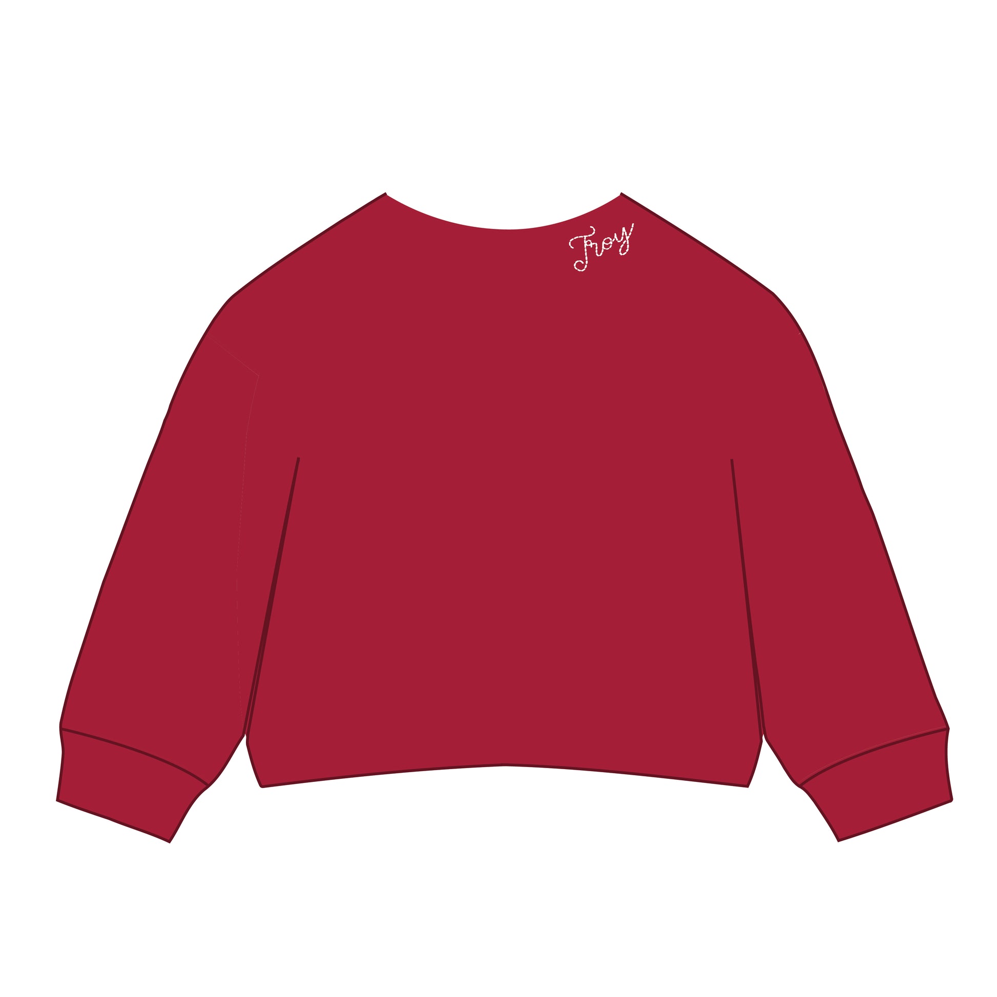 A subtle curved embroidery along the neckline adds the prettiest feminine touch — the script looks hand-sewn, giving it that simple, delicate detail that sets it apart.